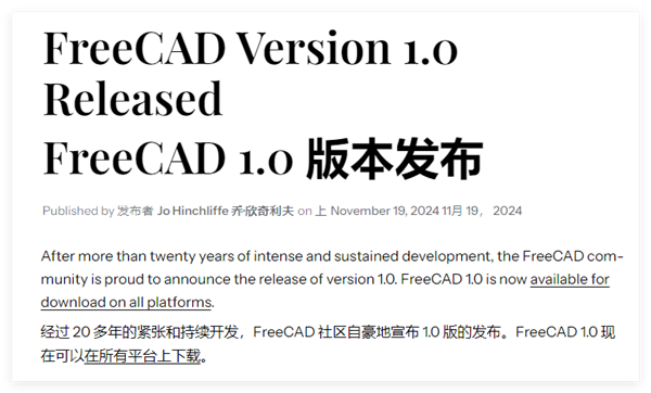 持续开辟22年分量级工业开源软件!FreeCAD 10不变